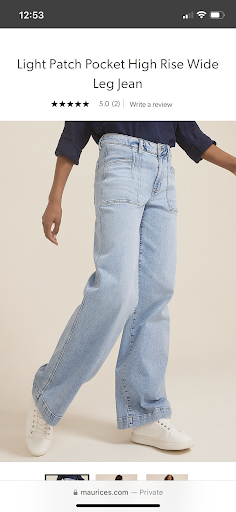 I browsed online prior to coming in to the store, checking to see if a specific pair of pants would be in stock. I’ve worked retail before so I understand that what may be listed online as in store may not actually reflect in store stock, but I was willing to risk coming in to check. I asked a sales associate, showing her the photo of the pair of jeans I was looking for. This specific pair I had actually seen on someone else and they said they purchased it at their local Maurice’s store! They were so cute, I wanted a pair for myself. She was friendly, but told me they didn’t have that exact style or any wide legs like it, that it was probably online only style. I said no problem, and looked around at other things.