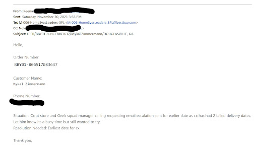 Read moreI would give this zero stars if I could. On December 29th 2024 we called the Hiram Best Buys Geek Squad to set up an in-home appointment for my printer. We had previously tried to correct the problem over the phone to no avail. We were told that even though we paid yearly for the service, we would be required to pay $79.99 in advance for the service call. We were given Jan 7th 2025 as our service date with service occurring between 7am and 7pm. We were further advised that the day before we would receive a notification of a tighter window for our service. Even though the Geek Squad had 4 different ways to notify us, they chose none of them. I asked my husband had they contacted him in any way with a more accurate time for their arrival and they had not. On the 7th I was waiting for a call, text, email or something letting me know when they would arrive, and once again nothing. As the hours ticked away, I had a bad feeling that we were going to be stood up. At 1:13 pm I called the store to try and get an ETA. I spoke to Brandon and he advised me that the work was actually going to be performed by an outside contractor and not Geek Squad themselves. He also told me not to worry because they were trained to perform just as the Geek Squad would. I asked him what time they would be arriving because the day was growing late. He told me that they had NO WAY to contact their own contractors. I thought that was the craziest thing that I had ever heard. He assured me that they would come and that I would be pleased with the work they did. So I relented and didn't cancel. Now in retrospect I wish I had. Well 7pm came and went and no one showed up. I immediately called the store to voice my anger of the no call/no show and was connected to Dan. He listed to me, put me on hold and I suspect, hung up on me because the call disconnected. I called back immediately, put in my order number and heard details about my upcoming service call. Mysteriously from the time I was hung up on until the time I called back, someone had changed my appointment so it didn't look like it was missed. This time Christy took my call. I told him my story AGAIN and asked to speak to a supervisor because I wanted to escalate. He advised me no supervisor was on duty, but that he would process my refund (Which we still have not received) and gave me a case number and that a supervisor would call me within 24 hours (I'm still waiting on that too). I will never use this service again based on this interaction. We were given crappy information at booking the appointment and the nerve to not show up and not issue our refund will cause us to take matters to our lawyers. DO NOT USE THE...