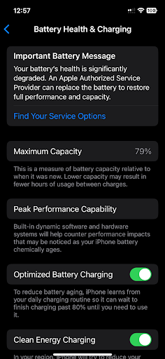 I am unsure if they replaced the battery as the iPhone still shows old battery details (79% capacity and requires service), and the battery is draining like crazy (see attached images).