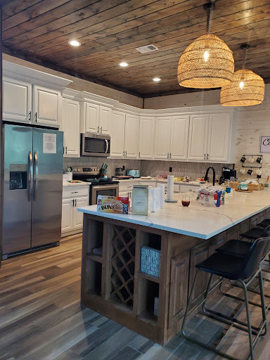 Read moreBeautiful cabin!! Good sized kitchen for everyone coming in and out of- and the large windows that give you a beautiful view of the woods along with the 3 different fire places/pit just add to the atmosphere! And my personal favorite- the WATER PRESSURE in the showers are AMAZING!!!! It was also so nice to hang out in the hot tub surrounded by nature with the wind and the birds singing all around you! Just watch out for the...