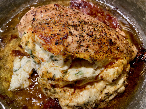 Ā Ā Ā Read moreStuffed Spinach & Feta Heaven. Ended up baking this wonderful chicken breast in a pan with olive oil, chopped garlic, and 1 piece of thick sliced bacon. Seasoned the top of the breast with kosher salt, pepper, and some other stuff. Just kept marinating the whole thing with the olive oil from the pan, as it baked, to keep it moist. Rice with broccoli as a side. Ton's of feta just oozed out and ended up on the plate. Bearded Dutchman Meats...