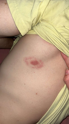 Came in with a very clear erythema migrans (Lyme disease) rash, as well as symptoms of a headache and some soreness. See the attached photo for the rash itself. I had been on a backpacking trip 10 days prior and suspected I got bitten by a tick then.