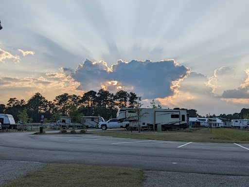 It was our first time staying at Oceans RV resort the weekend of July 4. Iâll give you my honest opinion and my take on this new resort. First, it is a very nice place and very clean. Campsites are very nice with sod and rock and nice hook ups. Very spacious as well. The check in office is very nice and plenty of room for your vehicle/rv to park While you check in. Some one will lead you to your campsite. Dumpster area is very clean and spacious, but could possibly use another dumpster as this place grows. Letâs do take in consideration that this place is very new and may be still growing/adding things. Now, let me discuss a few of the negativesâŚâŚ I could not find any street lights, itâs very dark, and if you donât know your way around you could easily run over the big bolder rocks they have on the corners of the roads. The sprinkler system in our area seemed to come on every 30 minutes, that may not be the fact but thatâs what is seemed. Our campsite was a sloppy mess, we couldnât even use our fire pit because it was about 10-15 ft from the wooded area and it was also in the mud because of the sprinkler system. The sod that was on our lot was mush because it was so wet all the time. The other part of your lot is mulch which gets everywhere and all over your cement pad which has your picnic table. My opinion would had been better to sod the whole site to save on tracking so much mulch and dirt into your camper. Next, we had an emergency at the pool and thank goodness we had our cell phone, which most people do, BUT if we needed the emergency phone for a pool emergency someone would have to go outside the pool area and walk down about 20 ft to access the red emergency phone. That is the only phone I saw for the outside pool area. Not saying there may be another one, but thatâs all I saw. The pool also does not have a rope to determine the 3 ft section from the 5ft section. I would think that would be helpful especially for little kids or those that canât swim. The playground is EXTREMELY hot, the padding/ground material used inside the play area looks like asphalt however is it spongy and VERY HOT. The swings are black vinyl/rubber type material and VERY HOT. Iâm so glad I checked before letting my granddaughter get on the swing because she would have gotten blistered. There is no shade what so ever in the play area or in the entire RV campsite. Yes it is new and all new trees, which is why the no shaded areas. The bathhouse is very clean and stylish, BUT you better be quick because the lights are on a sensor and if you are alone and are slow as myself, you will be in the DARK. Front desk staff is nice and polite for the most part. We had a issue with visitors, but I had everyone listed on our paper but the older lady with the pony tail was very rude and wanted me to pay an additional $240 because these extra people were not listed on my âsign upâ sheet when my son booked our site back in May. So when we questioned the issue, she told me to nevermind this time and we were causing them To lose revenue. We did hear other people at the pool saying that the front desk will tell you one thing one at and another thing the next day. Everyone at the desk has different rules it seems. My son had already stayed at this resort back in may and came back this time as well, but this time he was told he could not park his boat at his site and needed to park it at the storage lot and he also couldnât park his truck in the overflow lot. You can not have enclosed trailers also, so he was told, even though we didnât have one, just FYI I guess. Just my take on the new RV resort, my...