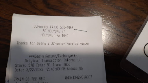 Read moreHi I am not happy with the customer service in the Holyoke store, the men's department. The younger male clerk that works there was very rude to me over the use of the stores coupons. It seems they are no longer allowed to use one of the extra store coupons if you forget yours. Because I am a senior citizen I was made to feel stupid as I was told that their policy had changed and everyone knows that and if I didn't know how to work my phone to download the store app, he would show me. I said not everyone has a smart phone and there were no notices mailed out explaining about the new coupon policy. So in short if you forget to print out the coupons and bring them with you then you are out of luck unless you have a smart phone and have downloaded the JCP app. For the past few months the clerk's at the Holyoke store have been rude and don't want to go look for anything, they say everything we have is all out. I can understand now why JCP might go out of business. I have shopped there for over 45 years and do not need to be treated rudely just because I am a senior citizen. I finally went home and just ordered what I wanted online and used...