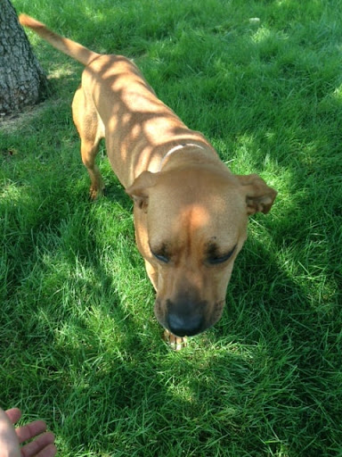 As for my review, I arrived at TLC and was genuinely impressed with their spacious holding areas. They're in Homer Glen (IL) and have a nice plot of land, so the building offers them lots of space to work with their rescues. I walked in and it felt comfortable right away; after all, how can saving animals be anything less than amazing? I was met by Casey, who immediately brought out the beautiful, female Rhodesian Ridgeback I came to (inevitably!) adopt. She was exactly what I had hoped for and Casey seems to have a sixth-sense with these animals.