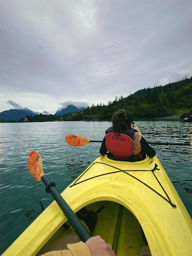 Since we booked last minutes so there are only me and my daughter . Our guide Asta is waiting is in the bay she fitted us the kayak and here we go. On our 3 hours kayak, she give us the whole educational and entertainment guide, we now know the starfish is keystone species and they just came back after an extinct due to unknown disease. The kechmach bay is in the divide between pacific plates and North America plates that why part of mountain is covered with glacier Icefield and part of mountain is green forest. Also we know Asta is a collegial swimmer and just graduated from college last May and experience her freedom and adventures before she decided what she is going to do, she has been so many wonderful places and she gave lots of good advice to my daughter she is 16 also a varsity swimmer, I really hope my daughter can be like her, strong fit health love life and so fun to be with.