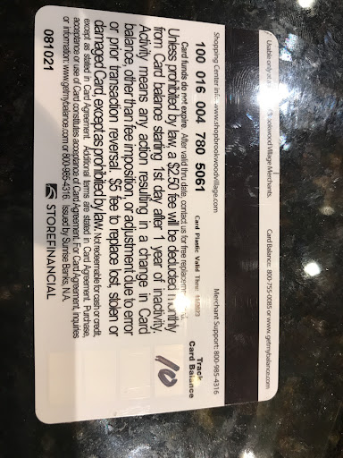 I won a silent auction item donated by Brookwood Mall that included a $10 gift card from all Brookwood Mall Merchants. I waited over a year to redeem it and when I tried to redeem it I was told that the card had a zero balance. But I never used it...then I looked closely at the back of the gift card and read, “Unless prohibited by law, a $2.50 fee will be deducted monthly from Card balance starting 1st day after 1 year of inactivity.” What brilliant marketing genius approved that? Oh well Galleria...