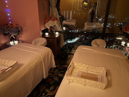 We visited this place while on vacation in January. Towards the end of our vacation I thought a couple’s massage would be nice. I saw an ad for this place on Facebook so I reached out. This place is very responsive and we were able to get in later the same day. Their space is high up in this building and has pretty city views. Our appointment was in the evening, so the city was all lit up. They were really good about explaining where to go to park in the parking garage as well which was super helpful. When we got there, they let us chill in one of their lounges while they finished preparing the room. Then when we went to the room, they gave us time to dress down and get under the sheets on the massage tables. Neither of us had had a Thai massage before and we were impressed when the ladies stood on our backs with their feet! I didn’t notice this until after the massage but, they have metal bars on the ceiling to help the masseuse balance while performing the massage. It did not hurt or anything. It was really cool to be honest! I was amazed. Overall, the massage wasn’t very deep but it was very relaxing. Me and my husband slept really good that night afterwards. My only complaint with this place is that they have so many different scents going everywhere- I’m talking multiple candles, plug-in scents, etc., that it was very overwhelming to my nose. I’m pretty smell sensitive so it was a little too much for me and I started to feel a little dizzy. I get wanting to make the place smell good but I think it’s too much that it makes the space less pleasant. Other than that, everything else was great! I highly recommend coming here for a massage if you’re...