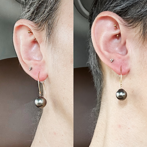 He explained that the reason I lost the original pearl is the post on the ring was too short. Instead of just adding his pearl to my ring, he said he would cut out the old post, clean the basin (where the pearl would sit), install a better post and THEN add one of the pearls to my ring. He also offered to make the other pearl in the set into a single earring. And, since his offices are located in Honolulu, he promised to mail it all back to me when he was done -- all for a ridiculously low price. This attention to detail and dedication to his clients is why you should only get your pearls from Le Mana Perles.