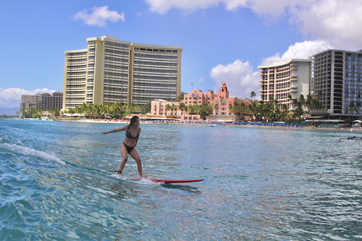 Two years ago, I lived in Waikiki for 3 months. I learned how to surf with another instructor and caught the bug to keep going. I spent many hours on the water and renting boards each time. I felt like a fixture in Canoes. Each day I had a decent session catching good waves, enough to make me walk away with a huge grin on my face and leave me wanting more.