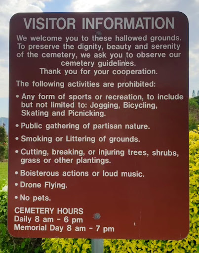 Read moreI live nearby to this cemetery. Ever since my father, a Vietnam-era veteran, was diagnosed with ALS (considered a service-related ailment for which we are currently filing for survivor benefits), I have been walking up the hill to the cemetery from my house to find some comfort. He passed away a month ago. Again, I've been walking through to find some comfort and peace. Today, I was stopped by security and he proceeded to tell me that they've noticed I often exercise through here. I told him I'm not exercising. I'm simply walking through because my father was in the service, to which he replied with a laugh. I couldn't bring myself to also mention that he recently passed away as it is too soon for me to talk about without crying. Is there a limit on how many times I can walk through? Exercise would be me running, biking, jumping jacks, push ups, etc. Is there certain attire that's not allowed? Should I only walk through in a suit and get all hot and sweaty? Just today, I passed 4 young women (in 2 separate groups) that were dressed in sports attire walking out. Did they get talked to? Every time I'm in there, I notice people dressed in all kinds of attire. I must say, it's a punch in the gut to be told that I've 'been noticed' when I simply walk up the hill to walk through and try and find some peace and solace during this difficult time. If walking through multiple times is not allowed, that needs to be stated. If wearing shorts and a shirt is not allowed, that also needs to be stated. Needless to say, I'll try and find some peace and comfort...
