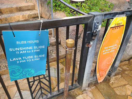 The pool itself is beautifully done. I love that it has ledge seating along many sides of the pool. There are 4 slides total. The bigger volcano tunnel slide is only open from 2-5pm. There are 2 short slides that are only open from 11-2. These all flow into a larger upper pool. The 4th slide is a short tube slide leading to a waterway going under a walking bridge into a large lower pool. I am not sure why there are such limited house for the slides. They are used constantly when opened. The large Volcano slide can have a long line, but it seemed to go fairly quick. The line length fluctuates. Unless you arrive as the pool opens, it is close to impossible to get a lounge chair. Most people keep their belongings on the chairs all day lone. FYI, the line starts growing about 20-30min before the gates open. The pool area itself gets extremely crowded and the seating is limited though they have packed in as many loungers as they are able. We rented a cabana one day and those are great offering shade as you need it. Plus, it is yours for the day, so you can come and go guilt free. Overall, it is a beautifully done pool area. My only suggestions would be for the slides to be open more and more creative seating availability, such as upright chairs or benches. Unfortunately, there was a poop incident that cleared the pool for the remainder of the day on one day we were there. That is not the fault of the pool. The staff acted quickly...