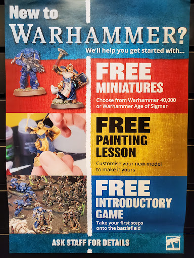 My fiance and I wandered into this place on a curious whim. I have never played Warhammer 40K, but were I ever interested in learning how to participate; or if I simply wished to spectate, this is the place I would go. The men there were HIGHLY knowledgeable of every aspect of the WH40K universe. The can easily inform any one of the history of the franchise, the lore behind the many playable factions, and even the latest developments and where the story is going next. The walls are stocked with box sets of figurines or whole sets of units. And again, they excel at explaining the details of said merchandise. Most sets require you to assemble the figurine and even paint them yourself; but I believe that they have pre-assembled units as well. They even gave both of us a free figurine as a sample piece! We spent a good deal of time there simply learning of the gameplay mechanics and rules as well. It is a lot of information to take in at once, but they host tournaments and regular games frequently at their location; so one could sit in during these times and get first-person experience if they so chose to. All-in-all a great place to visit if you are interested in learning any thing about the game, or seeking to...