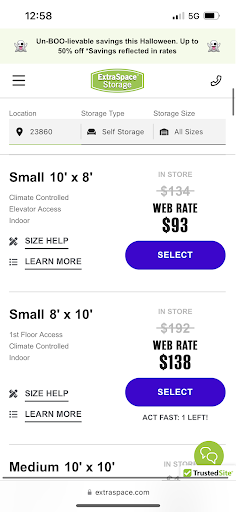 Ā Ā Ā Read moreThe workers are friendly BUT renter beware! This is a faceless corporation whose customer service number lands you back at a local office, talking to the same, friendly local people who unfortunately can only help to a certain point. My issue began at the locked in āweb rateā onlineā¦the rate is NOT locked in they can/will raise your rate at any time as long as they give you 30 days notice. My main issue is that you wonāt find that out until you show up with all of your things to finalize your lease and move in because itās buried in the fine print and you HAVE to sign before you get access to your unit. I had no issue for a couple months but imagine my surprise when they raised my rate by $60 (almost double my web rate) with NO notice! They will say they mailed me noticeā¦though ALL other communication has been via email or their app. In any case, I think itās a shady business practice and potential customers should be made aware that the āWeb Rateā is not guaranteed past the month of move-in, BEFORE showing up with their belongings to finalize the lease and move in. Online, there is no asterisk or fine print available, you only find out the rate exceptions when you show up. Then, if thereās an issue, thereās literally NO ONE to contact at the corporate level unless you use their chat feature in the app, the customer service phone number they give you (and found online) will just reroute you to the folks on-site. Either way, I moved out of this place and went to Ample Storage in Petersburg (brand new so they werenāt open when I moved into extra space) they have better rates and wonāt raise your rate for at least a year and even then itās not more than $10/mo at a time. I moved in to a unit the exact same size as the one I got at this place for $35/mo. I like the first floor access at Ample as opposed to the three floors and single, extremely slow elevator at extra spaceā¦also, because extra space is an indoor facility, it often smells VERY badā¦.other than that,...