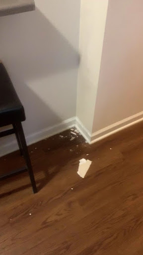 Unfortunately, at the time of move-in, I had to purchase my own mattress as the one provided was in poor condition, as noted on the move-in inspection. Shortly thereafter, on July 11, a significant rainstorm resulted in water damage that spanned the entire living area. Multiple seams across a 20-foot section of water-damaged drywall fell onto the floor. Despite submitting a work-order to address the problem, the water-damaged drywall was never fixed even through my departure from the suite on November 19, 2021. A maintenance person did come and look at it but did nothing but encouraged us to sweep up what fell. This is very concerning given that water-damaged drywall can result in mold build-up and clearly an inhospitable/unfit living condition for the tenant in violation of the Virginia Residential Landlord and Tenant Act § 55.1-1220.