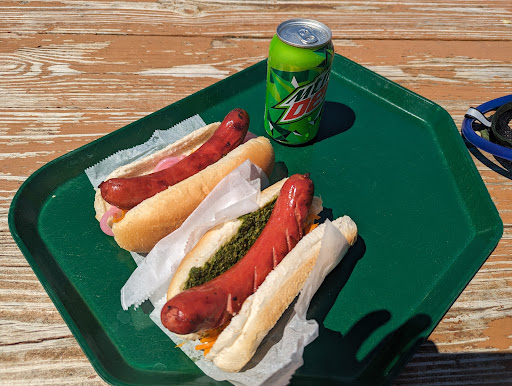 GREAT HOT DOGS! The quality of the dogs were top notch. You are given a generous bun & a choice of 12 condiments that you put in the bun to your liking. Then the beautifully grilled dog of your choice tops it all. Unless you go for the "angry chili" which is ladeled on the top. OMG. I will be going back as often as possible during the good weather.