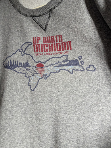Lots of outdoor wear and gear for the average person; in particular, hats, t-shirts with local coolness on them, fleece blankets, sweat shirts/jackets, lots of different hats with earflaps, (I was enchanted by the fuzzy one with buffalo-type horns), and so many genuine Swiss Army knives that nearly everyone in the crew should find one they like. I go here for bucket hats, (good in hot weather), throws with the UP on them(can't get enough of them), and jackets, (the last one I bought is many years old and finally wearing out). We get to stop by once in awhile to see the new stock, and the college kids who are usually there are nice and friendly. I usually know what I want, when I go in there, so I don't need to ask them much. But I suspect they would try to help if I had questions. All in all, a good value for the bucks spent, and if a good touristy t-shirt is all you're after, then this would be the...