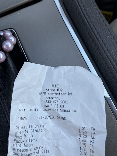 Read moreOn Saturday morning my spouse and I visited the Aldi's location on Westheimer Rd in HTX. Now, we go every other week to this location and have never had any bad experiences until Saturday. We completed our shopping and proceeded to the check out. There were 3 team members in the entire establishment that I saw. One, possibly a shift manager and two cashiers one male on female. The male cashier doesn't know how to say excuse me while he walked right in front of us to go into the back area by the coolers...but he wasn't the problem. It was the female cashier who one, never acknowledged our presence. My spouse stepped to the end of the check out station and grabbed our bags and proceeded to open a bag being the cashier was throwing our items. Like, since your throwing them, throw them in the bag. The cashier said, "maam, we do not bag". Yeahh, we know that which is why we have our bags with us. Totally rude and disrespectful and tried to say she was hit by the bag. No, she was throwing our merchandise and the male cashier in front of her had assisted his customers by allowing the gentleman to hold his bag and he just tossed the items in it. Anyway, she continued on, I paid and she says, you can get your own receipt and she walks over to grab another cart. Now we are bagging our grocery and she calls what may have been the shift manager over points in our direction and he looks but says nothing. I'm being very observant at this point. Apparently he wasn't pressed by her comments as her attitude was very unprofessional and demeanor screamed, "I don't even want to be here". Not the consumers problem. Long story short. We will NEVER patronize this location again. We will go to another friendlier location where the customers are treated with respect and the cashiers handle the customers merchandise with care and not attitude and throwing items . Its one thing to place the items back in the cart for the customer to bag but to throw items is unacceptable. All because of this experience I will drive further out for...