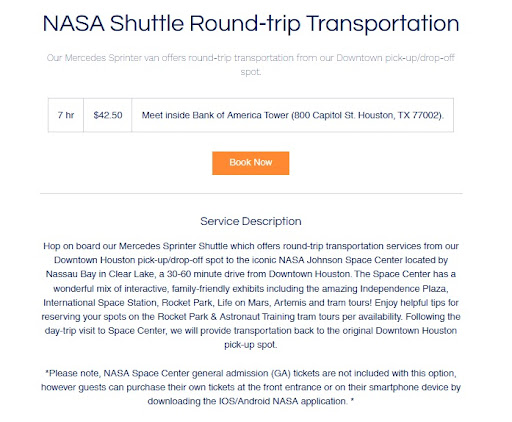 Read moreI booked the NASA shuttle bus only, but ended up on a NASA with extra Houston tour, which had stops and extra time that I had not booked. On the one hand, you could say I was lucky as I got more than I had paid for. On the other, you could say I lost an hour of my time at the space center being taken on a tour I did not ask for. We were picked up at 9am and arrived at the space center around 11am, not 10am when it opened, due to this extra tour time. Vanessa and Luis were great (friendly, informative, accommodating), but I would urge anyone wanting to maximize time at the space center to contact Vanessa in advance to ensure you are not "upgraded". For me personally, it meant I didn't have time to do everything I wanted at the space center. That is why I have given the 3 stars.