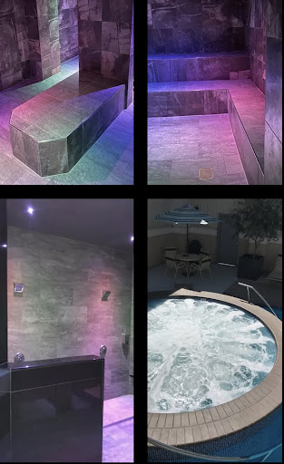 When you walk in on youâll find a lounge with vending machines and behind that is the gym, a bathroom, and the locker area. Outside is the pool and jacuzzi. You can also access a shower area, sauna, and steam room from either the gym, lounge, or outdoor pool.