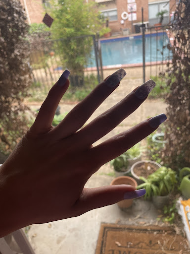 He made my nails even better than the picture I showed him on Pinterest. Light blue purple, clean edges, even cut, sturdy and he thought two accent nails would be better than one, he was right! He did ombre on those two and put iridescent butterfly’s that change with angle and light!! Ahhh I’m in love w them!!!