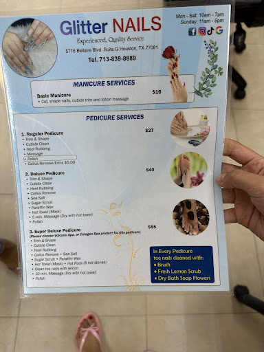 Ā Ā Ā Read moreThis was my first time visiting Glitter Nails, and I was more than impressed with the ladies' service and attention. They made me feel welcome at entering, and my toes and nails came out beautiful. I loved my set and my toes. I also got my eyebrows waxed very kind. Will recommend 10 out of 10 service. I also bought this amazing coffee the sell very impressed with the coffee and hot chocolate I got. Thank you, ladies, Ms. Chi is superb nice š...