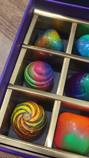 Read moreMy order arrived in CA, and was packaged with great care. The chocolates were still chilled when they arrived! Each candy was decadent. Flavors were fresh, natural and absolutely delicious. My favorite was the white chocolate raspberry, the dark chocolate peppermint and the dark chocolate coconut. Give Interstellar Confections a try, whether a treat for yourself or a gift for someone else. They don't disappoint. If shipped, you get tracking updates as well. Also...I bought one of their T Shirts and the quality is 💯 spot on! ...