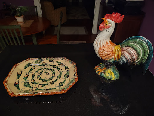 Read moreMonths ago, I accompanied my wife and in-laws to La Taste for my wife's favorite bubble bath, Aqua Coraline. Her and her sisters admired the imported, pricey pottery from France, they were tasteful, even when the whimsical pieces. Yesterday, after a rare lunch in the Village I went by and bought this platter for my wife to pair up the (in my opinion) garish Amalfi rooster on the kitchen island. She LOVED being surprised by a gift she found precious. And yes, it had three colors matching her rooster. The store clerk was attentive, I was the only customer at the moment, and she quickly climbed a ladder to fetch the dish off it's perch,...