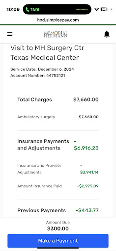Read moreI’ve had an incredibly frustrating experience with this facility’s billing department. Their phone number does not work, yet they keep calling me about an unpaid balance—even after they deducted the payment from my bank account. Now, I’ve overpaid and have to go through the hassle of proving it. To make matters worse, when I contacted Memorial Hermann, they had no record of my account, which makes it clear that this bill is actually from Memorial Hermann Surgery Center. The lack of communication and the billing errors are unacceptable. Patients shouldn’t have to go on a mission just to fix mistakes they didn’t make....