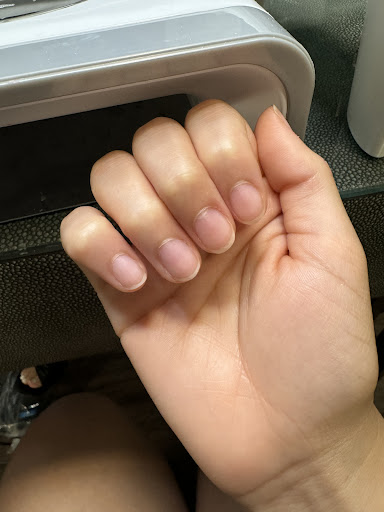 The actual manicure was of poor quality and not up to high end salon standards. My nail lengths were cut and filed unevenly and the individual nail shapes are inconsistent. I found that her work on my cuticles was extremely rough and painful and I had deep cuts under several of my nails for over a week, which stung every time I used my hands in any way, especially in water. I told her multiple times that her technique was hurting me and she ignored my request to be more gentle. On top of that, she had a horrible chrome application technique, which turned out patchy on one hand and nonexistent on the other. Her nail color selection is also extremely lacking.