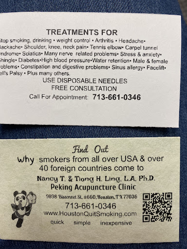 Although Dr. Ling insists that one treatment will do, you may want to think of it as a 30 day treatment plan. I wanted to make double sure the noose of nicotine was forever eradicated from my life. So, I followed up the first Saturday (04/22) appointment with another treatment on Tuesday (04/25) and Friday (04/28) the first week, then Wednesday (05/03) the next week and a final appointment on Friday, May 12th. The smoking cessation treatment with Dr. Ling at Peking Acupuncture made it easy for me to kick the habit - no nicotine withdrawals or urges to overcome. I highly recommend Peking Acupunctureās smoking cessation treatment and hand out their card to any smoker mentioning the desire to...