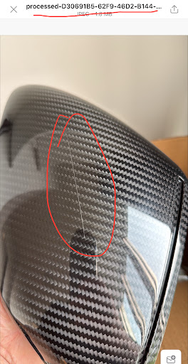 Read moreOrdered a pair of Aero Republic OE Style Replacement Mirror Caps for Porsche 911 992 & Taycan Carbon Fiber × 1. Came in a severely damaged box and one of the mirrors was shipped with a scratch on it (1st picture). We had reached out to customer service, after chasing them for multiple days did they finally give the ok to replace them. I received the mirrors today to only realize that they resent me the SAME mirrors with them slightly buffed out (2nd picture). We paid 650 USD for these mirrors to be scammed?? What horrible service and thieves this company is. I would STRONGLY advise to stay away as they clearly take their customers...