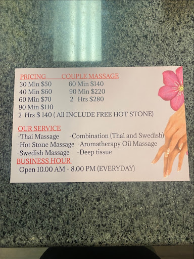 Read moreI drove 22 hours from UT to Houston for an event and was really sore from the drive. After calling multiple businesses in the surrounding area and looking at reviews I decided to go here. Let me tell you it was a great decision, she’s a very kind lady I did the hour Thai massage and it’s by far the best massage I’ve ever received! Granted she did have to answer the phone a few times as it seemed she was alone in the office but I still got my full hour in and I respect her hustle. I just stepped out the door and feel amazing! I definitely recommend coming here if you’re just in town for a few days or live here it’s a hidden gem. Thank you!