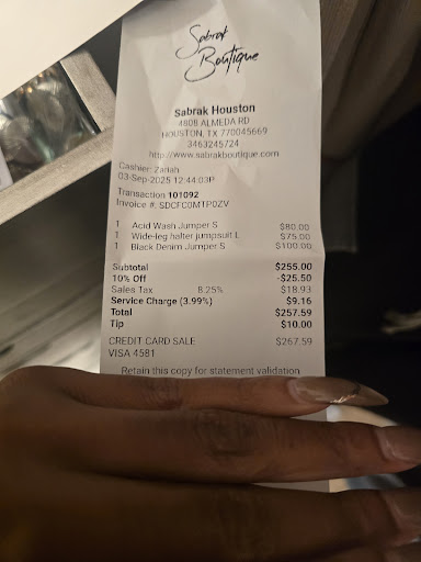 I recently visited Sabrat Boutique and had an absolutely wonderful experience! From the moment I stepped inside, I was greeted by friendly staff who made me feel right at home. Their attention to customer service was truly exceptional, as they took the time to understand my style preferences and helped me find the perfect outfits.