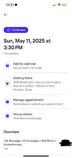 Read moreI don’t know why there are so many 5 star reviews. My experience was very interesting and not as relaxing as other spas. Yes, the place was clean and smelt amazing, but the therapists I had lacked precision and didn’t fully address what I came in for. I had to ask SO many times to please address my upper back and neck. Even then, then would skim over the shoulder area and just start working down the back. They incorporated Swedish techniques when I repeatedly said I wanted deep tissue. The first lady I had laughed at me when my body jumped because I was burned by the stone. She thought she had applied too much pressure or something. Like no, you literally placed these stones right next to my arm and then preceeded to press down to massage my arm once it hit the stone. Not a fun experience. So, I had her switched out mid way for someone else but it was still just very sub par then other places I’ve gone too. Overpriced and under delivered, and yes I ended up paying full price even though I wasn’t happy with my massage. As a licensed massage therapist myself there is nothing worse then feeling like you got an incomplete massage. I didn’t even add the fact that they pushed up my appt 15 min without consulting with me first?? Like yeah, I arrived early, but I was on a zoom for school hence why I booked it for 7:30 not 7:15. Very strange to feel like you are being rushed into your appt. They should’ve asked if I wanted to start early and not...