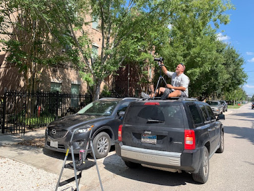 Michael tried several ground shots and ladder shots ...in the midst of traffic. He then pulled his car around and climbed on the roof to get the perfect shot!!! Pics are included but keep in mind I'm not a photographer! Ha! My favorite is the pic of him on the roof with cars trying to get around us.
