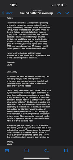 Update: I originally posted the review above on ClassPass and wasn't planning to share it anywhere else. However, this morning I received an email from the owner that compelled me to share my experience further.