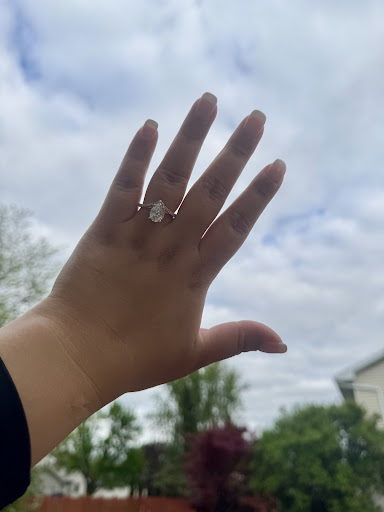 Come the day of the proposal, my wife absolutely adored the ring! The ring was just a little too loose, so we drove up to Feldsteins of Green Bay to get it resized. We were running late and the store was going to close, but the staff stayed past close to help us out. When we arrived there, Julie's son Mitch assisted us right away and was able to get the ring resized. On top of that, Mitch showed my wife and I a variety of wedding bands to consider. Before walking out, I decided to pull the trigger on getting my wedding band. Mitch helped me customize and order the ring in the store, then I picked it up a month later. The ring was absolutely perfect!