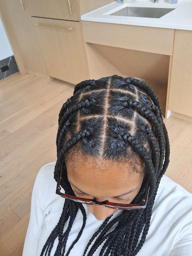 The service itself was excellent. My daughter chose basic box braids, and Khouri’s work was immaculate. Her parting was precise, the braids were uniform in size and length, and the finished style looked perfect. What impressed me even more was how gentle she was—my daughter is usually tender-headed, but this time she sat through the entire two-hour appointment without a single complaint.