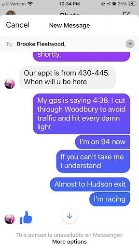 Ā Ā Ā Read moreI was in town for a wedding over Memorial Day Weekend and booked an appointment for makeup and hair at BB. Please note, I did call and speak with someone at BB who said they would pass my feedback along to Brooke and then get back to me. I haven't heard a word since.