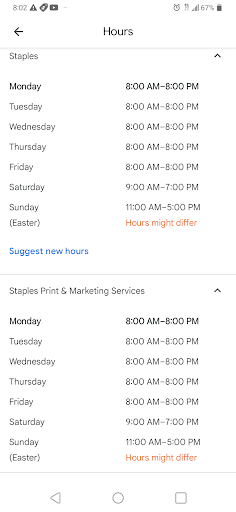 Read morePrint shop hours need to be updated, showed up at 7:45 pm and was told that it was closed since 7. Store closes at 8, running a little late on a Monday evening I admit. I couldn't find where this is stated, I drove over 20 minutes to print a large file since the self service machines always get stuck with this size. Luckily the self service machine took the file after loading for several long minutes, had it not take then I would've been in trouble. Props to the employees that kept their cool with me throughout the process. My reason for this review is to inform other customers of this and for the store owner to take notice of incorrect...