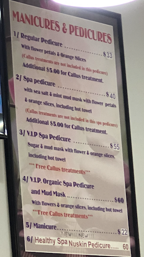 I visited Ivy Nail salón after reading many reviews indicating that this place is great. My experience was not what I was expecting based on the reviews. Before you walk in you notice all the signs on the door indicating how they are managing social distancing. Once you enter you are required to first use hand sanitizer, wear a mask, take your temperature and sign a waiver relieving them of responsibility if you contract COVID-19. I thought this to be good practice since you also have to leave your name and number to be contacted in case of an outbreak in their salon. Every other nail station was occupied as well as the spa chairs. I asked for a pedicure, I was seated after a few minutes of waiting not before being asked if I had an appointment. Once I was seated the owner was the one that was providing the service, however he continuously kept looking at the door and not quite paying attention to my feet. Every time someone walked in he got up to tend to them. When he finally focused on me he failed to clean under my nails as I asked him to do. When filling my nails he pretended to file them by doing a swift round motion with his had and the file. I asked him to file again but of course more customers where coming in so he got up to tend to them. By this time I was getting frustrated and just gave up on having a good pedicure. If you want callous removal is $5 more when getting a regular pedicure. The process of dead skin removal is mediocre. He scrubbed my feet with a very very small scrubbing pad. I was confused about why he was using that. Instead of using regular skin scrub on my legs they use half an orange. I was expecting flower petals as listed on the price chart I was told they didn’t have any. This confused me even further because that is the expectation based on what they offer. I really wanted this place to be great being that I travelled all the way from DC but I guess everyone’s experiences will vary based on who provides your service. I give them two stars because they have a social distancing...