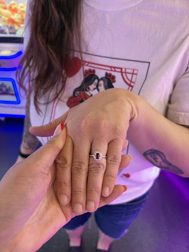 We were greeted by extremely helpful, friendly staff who never treated us poorly or talked to us condescendingly because we clearly didn't make a lot of money and I never ONCE was made to feel like my ring wasn't as valuable to them because it wasn't a diamond. The jeweler, Tom, stayed late to talk to us and reassure us that we had options, he could fix it. He was seriously amazing. I walked into the store upset and sure that we would have to purchase a new ring and I left feeling hopeful. Two days later he had us come back and look at the new stone he'd ordered to put in the ring and it was gorgeous, so much more beautiful than I even could have expected.