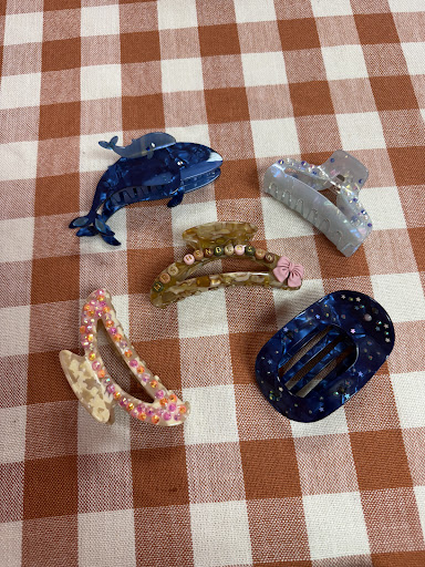 They have a lot of different products available for purchase: earrings, necklaces, rings, bookmarks, stickers, tote bags, hair clips, small bags, and cute graphic tee shirts all come to mind. Much of the stuff is super brightly colored or funky and fun in appearance and style; it really is SUNSHINE studio. Other items express fandom for many popular musical artists like Chappell Roan or Taylor Swift; or a love for nature and all things woodsy; or some items even bring a fun and witchy/spooky flair. The walls are bright pink and orange and the staff and owner are all similarly cheerful, vibrant, warm, and encouraging.