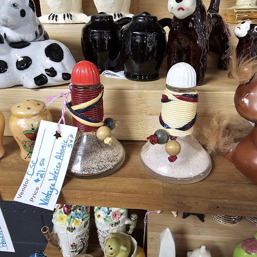Read moreThis place isnt for you if you actually enjoy the hunt for vintage and antique. This store has a smattering of things ranging from Ai art to overpriced antiques, but it seems to be mostly whitewashed shabby chic decor. It feels like they tried to have one of every item a person would expect to find in a store like this, but they didnt bother to find the best example of each thing. For example, I collect sewing baskets, and of the two I stumbled upon there, one was stained, wicker breaking, lid only attached fully on one side, and dirty inside for over $22. That is absurd. I also collect carousel horses and, of course, found just one there. I have found far higher value ones for less, in true antique and consignment stores. I included a picture of a set of salt and pepper shakers I very recently found for $1, that they are selling for over $20. Im not saying these things are only worth so little, im just saying this is a store for people who THINK they're antique hunting and thrifting. This store is for the people that have farmhouse style plaid and Ai cow imagery in their house. This store is for the people with their whole kitchen filled with Pioneer Woman stuff. I just really want to save your time if you are a thrifty, vintage loving person who...