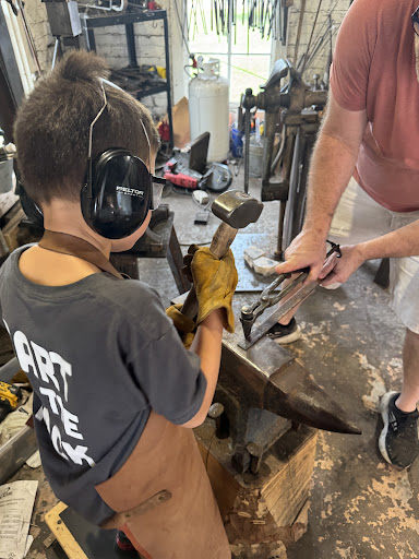 THIS WAS THE COOLEST EXPERIENCE. My 6yo and I are hanging out in Huntsville while my other child is at space camp, and I am so grateful to the Facebook group member who suggested this activity! Marc, the owner, was kind enough to use his extra time this afternoon improvising an Enderman backpack charm for my Minecraft-loving son to make. I was incredibly impressed by his ability to design it on the fly AND give a lesson on blacksmithing in an engaging, age-appropriate, fun way. I also made a rune pendant (despite being a fairly competent woodworker, I am, it turns out, very bad with a blacksmith hammer). The lesson in metalsmithing was super fun, but what really made the experience wonderful was Marc's humor, kindness, and warmth. If we return to Huntsville, we will definitely do this again! (See photos of my goofy-looking rune pendant, my lil blacksmith, and the Enderman moodily looking...