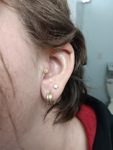 Read moreMy oldest got her ears pierced at Claire’s almost four years ago. One ear was and is fine, and has given her no issues. But the other one randomly and unfortunately snagged on a mailbox the day we got it pierced, and we went out of town for a week immediately following so they couldn’t re-do it until a week later. I can’t speak to their placement the first time, but that second time they pierced way too low AND at a downward angle, and it has had issues with infections multiple times ever since (weirdly just the one side). We finally said enough’s enough, let it seal closed, and went here to Sacred Alchemy to get it re-pierced.