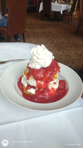 Read moreWe made reservations with the hostess with around 6pm. I was thankful that they do not have a dress code. Closest reservation opening was at 8:45pm. They texted a bit sooner at 7:50. Headed down to the restaurant and they gave our table away. Had to wait another 10 minutes. Service was good. Salad was not worth $15. I regret getting that. They took quite a while to bring the bread. The bread was warm and went nicely with the jalepeno butter. The lemon drop was tasty. The chicken and prawns had a delicous hollandaise sauce. My chicken was very difficult to cut through and even harder to chew. Thankfully the manager, Nicole, noticed (without me having to say a word) and kindly offered to have it remade or get another item. When they remade it, it was juicy, throughly cooked, but it had a bit too much char flavor for my taste that made the outside of the chicken taste burnt even though it wasnât. For the sea and land entree, the filet mignon was perfectly cooked. The sauce was not my favorite but it was ok. I wish they offered maybe a Butter Bordeaux for it. The lobster had a creamy, sweet, buttery flavor. I wish I ate that first. When I got to it after the steak, it was cold. The cold didnât ruin the flavor though. It was my favorite of everything ordered. For the sides, I mean âcompliments,â I didnât like the cream corn. It tasted like egg nog; the nutmeg threw off the flavor of everything else and I really canât imagine an entree that it could compliment. The aspargus was cooked nicely. The jalepeno mashed potatoes were flavorful and a bit spicy. The key lime pie was small and basic. Not worth the price, but the strawberry short cake was definitely worth it. The strawberry shortcake was made with homemade biscuits, strawberries, and cream. The music was relaxing and gave Bridgerton vibes and the fresh flowers for the center piece was cute. Despite the things that went wrong, weâll give them another try.