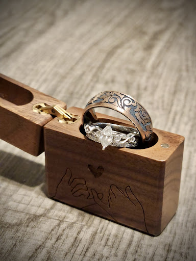 Given the short time-line for the wedding bands and the upcoming wedding on June 8, 2024, the team guaranteed that they will do everything that they can to ensure both rings will be ready for pickup very close if not the day before the wedding. From what I have gathered, there were a lot of hoops and even traveling involved for the Helzberg team to meet the short deadline window, but they did make it! Both rings looked amazing, too. Unfortunately during our honeymoon I lost my ring in the ocean in Jamaica :/ Once we made it back to the US, we later stopped by Helzberg again, this time at their spiffy new location to order another same ring for me. Of course, the ring customizations that I had really took time to get it to match 100% what I had ordered previously, but the team was able to get everything figured out. I am actually currently waiting for the ring to be ready, which I expect here soon, but with no intense deadline this time :)