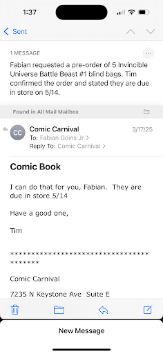 I have been a customer of Comic Carnival since the very early 1980s at the Carrollton Ave location. I had very very fond memories of my Dad taking me there. After today’s experience those memories are erased just by the lack of basic customer service. I’m very sorry I don’t fit your current customer profile. I’m still a person who took the time to come into your store. Maybe I shouldn’t base your company on one employee. I don’t write posts online typically. I went in to see if your company would be interested in buying some things. It’s ok if you’re not. Might want to look at them out of courtesy. Buyer not in? Might want to ask who I am and how to contact me. It took me hours to get my things ready due to a disability. As I struggled in your store I didn’t hear anyone ask may I assist you or thanks for taking the time to come in. I was given a look of why are you in my store. I even explained how long I was a customer. I went to a competitor. Very next store asked if I would like something to drink. Their buyer wasn’t in. When they found out how far I drive without even asking what I had they called their person and they came in and we did business. Even if we hadn’t I was treated far better. I was told thank you and was told hello. Now that we have done business he will be getting my good stuff. You didn’t have to buy anything. But common courtesy would be nice. I walked in with a cane and dragged in some books. I could have called ahead but I went old school to say hello to...